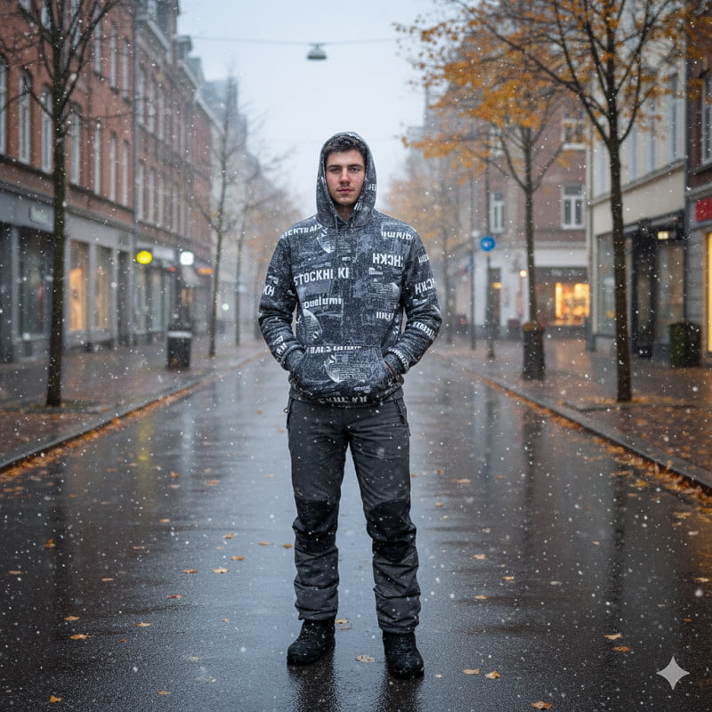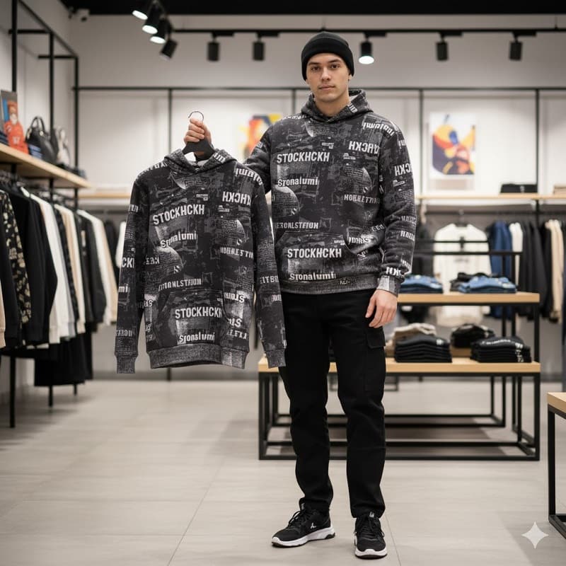 هودی طرحدار مردانه مشکی مدل stock